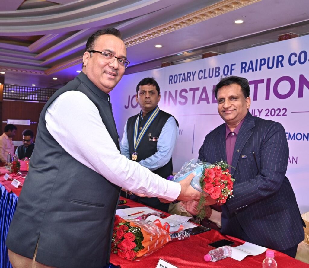 रायगढ़ – रोटरी क्लब के असिस्टेंट गवर्नर सुशील रामदास ने गत दिनों रायपुर के रोटरी क्लब ऑफ कॉस्मापॉलिटन के नई कार्यकारिणी को शपथ दिलाई। उक्त क्लब के अध्यक्ष आशुतोष सिंह ने बताया कि क्लब के असिस्टेंट गवर्नर सुशील रामदास और डिस्ट्रिक्ट गवर्नर शशांक रस्तोगी के आतिथ्य में अध्यक्ष रोटेरियन आशुतोष सिंह, सचिव रोटेरियन पियूष सुराणा और कोषाध्यक्ष रोटेरियन सौरभ सोनी सहित पूरी नुतन कार्यकारिणी के सभी पदाधिकारियों ने सेवा कार्य की शपथ ली। इस अवसर पर रोटरी क्लब के असिस्टेंट गवर्नर सुशील रामदास ने सभा को संबोधित करते हुए सर्वप्रथम नयी कार्यकारिणी को बधाई दी।