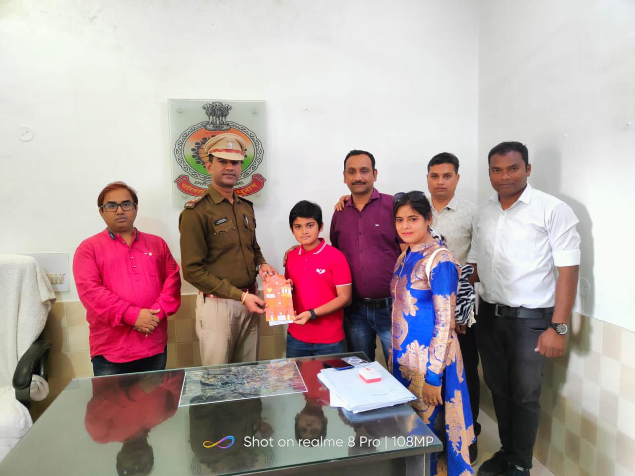 रायगढ़, । आज जब पुलिस कंट्रोल रूम में वरिष्ठ पुलिस अधीक्षक श्री सदानंद कुमार ने साइबर सेल टीम के द्वारा रिकवर किये 215 मोबाइलों का वितरण किया जा रहा था । उस दौरान गुम मोबाइल पाने वालों के चेहरों पर अलग ही खुशी देखने को मिल रही थी । इसी दरम्यान तमनार सावित्रीनगर में रहने वाले आनंद मिश्रा के 12 साल के बेटे अर्जुन ने अपने हाथों से ग्रीटिंग बना कर सायबर सेल में एसआई कमल किशोर पटेल और उनकी टीम को भेंट किया और अपने मम्मी-पापा और