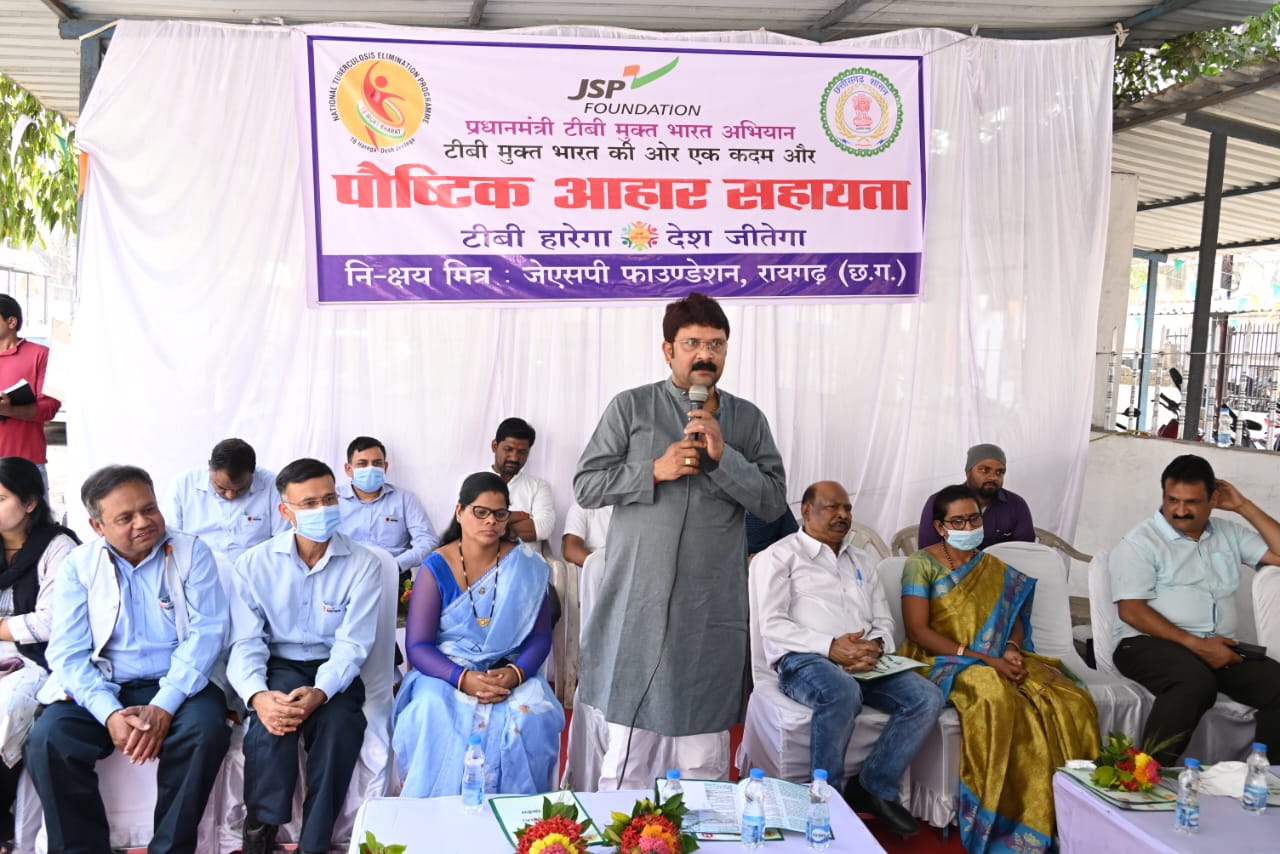 रायगढ- टी बी लाईलाज बीमारी नहीं है।सही उपचार से इस से निजात पाया जा सकता है। जे एस पी फाउंडेशन लगातार अपने सामाजिक उत्तरदायित्व का निर्वहन कर रही है।उक्त बाते विधायक प्रकाश नायक द्वारा स्थानीय जिला चिकित्सालय परिसर में जे एस पी फाउंडेशन द्वारा नि क्षय योजना के तहत आयोजित जिले के टी बी मरीजों को पौष्टिक आहार वितरण कार्यक्रम के शुभारंभ अवसर मुख्य अतिथि के रूप में कही गई। वही उन्होंने आगे बताया कि प्रतिवर्ष देश में 26 लाख लोग टी बी की बीमारी से ग्रस्त हो रहे है।जिसमे तकरीबन 4 लाख मरीजों की मौत हो रही है।वही उन्होंने बताया यह बीमारी किसी को भी हो सकता है। विगत 5 वर्ष पूर्व उन्हे भी इस बीमारी ने जकड़ रखा था।परंतु सही उपचार और पौष्टिक आहार के सेवन से इसे दूर किया जा सकता है।भारत में इसके मरीजों की संख्या का सबसे ज्यादा होना काफी चिंता का विषय है।वही उन्होंने जे एस पी फाउंडेशन द्वारा टी बी मरीजों को पौष्टिक आहार वितरण किए जाने के कार्य की सराहना करते हुए उन्हें साधुवाद दिया गया।