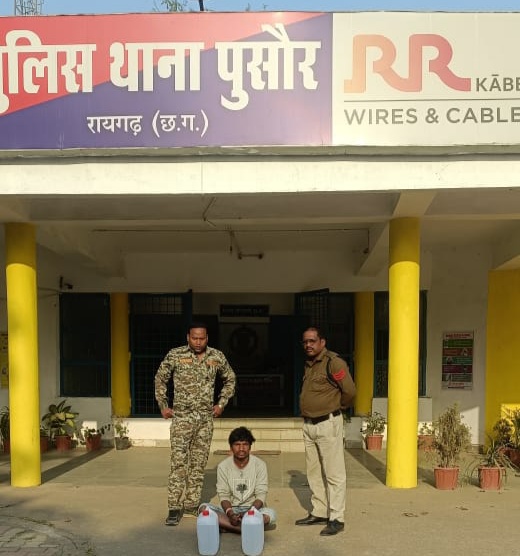 वहीं आज थाना प्रभारी पुसौर निरीक्षक नारायण सिंह मरकाम को मुखबिर से मिली सूचना पर थाना पुसौर के प्रधान आरक्षक श्याम दास महंत और आरक्षक लक्ष्मी पटेल द्वारा महादेव तलाब पुसौर के पास घेराबंदी कर शराब परिवहन कर रहे *आरोपी दिलीप सारथी पिता जगमोहन सारथी उम्र 38 साल निवासी पुसौर* के पास से दो 10 लीटर वाली क्षमता के प्लास्टिक जरकीन में *20 लीटर महुआ शराब कीमत ₹2,000* का जब्त किया गया है । आरोपी पर थाना पुसौर में धारा 34(2), 59 (क) के तहत कार्रवाई कर जुडिशल रिमांड पर भेजा गया है ।