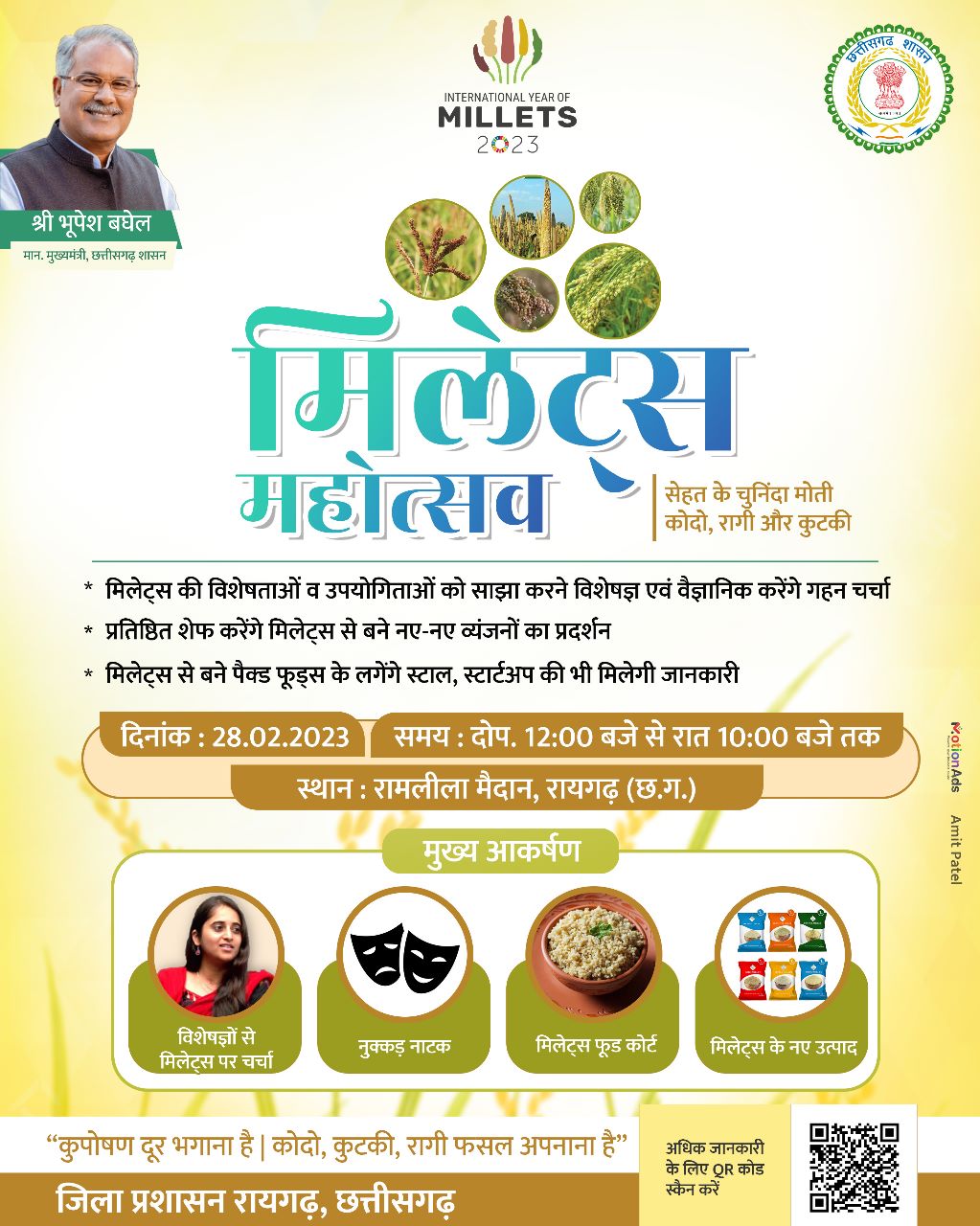 मिलेट व्यंजनों के लगेंगे स्टॉल्स, लघु धान्य फसलों की प्रदर्शनी के साथ महोत्सव में होगा नुक्कड़ नाटक का मंचन