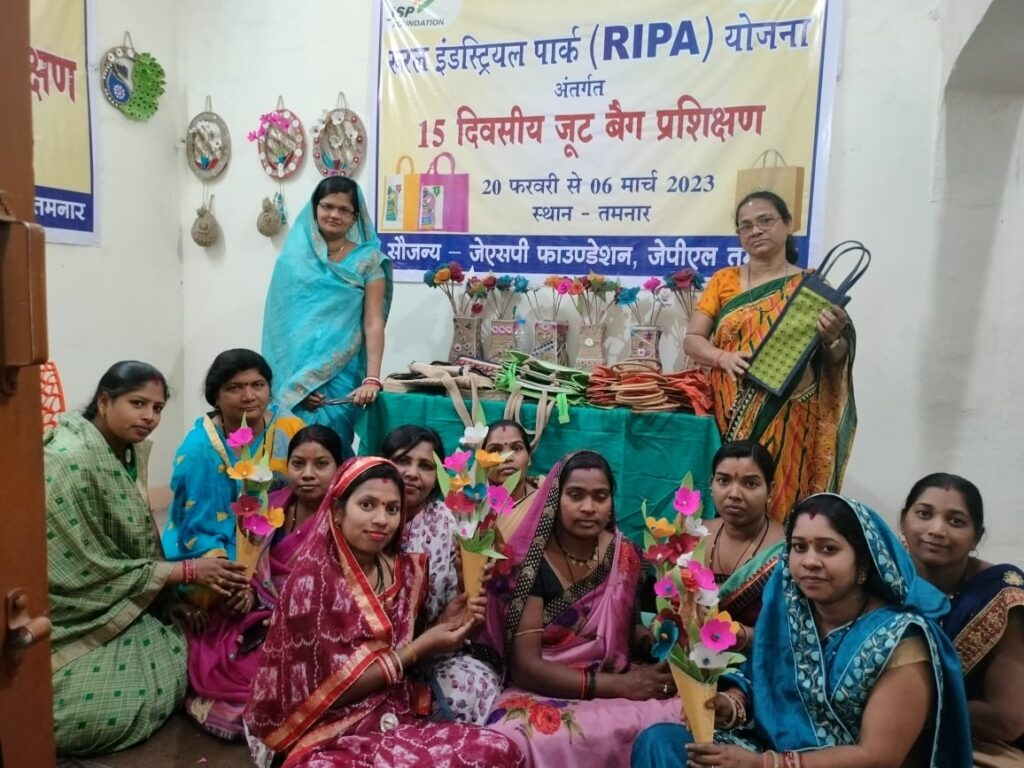 तमनार- जेएसपी फाउण्डेशन, जेपीएल तमनार छत्तीसगढ़ राज्य के बहुआयामी किसान हितैषी योजना एवं छत्तीसगढ़ राज्य के यशस्वी मुख्यमंत्री श्री भूपेश बघेल जी की ड्रªीम प्रोजेक्ट सुराजी ग्राम गांव गांव में स्थापित गोठान रूरल इंडस्ट्रियल पार्क (रीपा) में सहभागिता निभाते हुए हुए आज आकृति सेंटर तमनार में 15 दिवसीय जूट बैग निर्माण एवं प्रशिक्षण कार्यक्रम का शुभारंभ श्री एस.के. मरकाम, मुख्य कार्यपालन अधिकारी, जनपद पंचायत तमनार के मुख्य आतिथ्य एवं श्री ऋषीकेश शर्मा, विभागाध्यक्ष, जेपीएल तमनार की अध्यक्षता एवं सुश्री गुलापी सिदार, सरपंच ग्राम पंचायत तमनार, श्री राजेश रावत, सहायक महाप्रबंधक, जेपीएल तमनार, श्री मदन लाल साहू, विकास विस्तार अधिकारी, जनपद पंचायत तमनार, श्रीमती ममता साव, सदस्य, जनपद पंचायत तमनार के गरीमामय उपस्थिति में किया गया। प्रशिक्षण कार्यक्रम में विभिन्न स्व सहायता समूह की 25 महिलाएॅ सम्मिलित हो रही हैं।