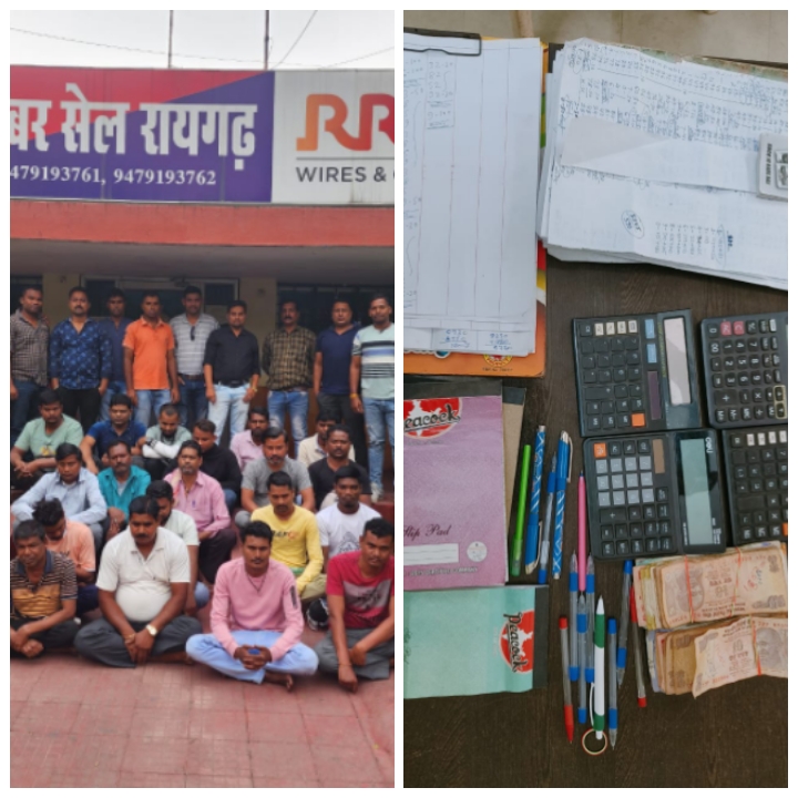 रायगढ़ । वरिष्ठ पुलिस अधीक्षक श्री सदानंद कुमार द्वारा जिले के समस्त थाना, चौकी प्रभारियों तथा साइबर सेल की टीम को सट्टा खाईवालों और सट्टा पट्टी लिखने वालों पर प्रभावी कार्यवाही का निर्देश दिया गया है । निर्देशों के पालन में आज एडिशनल एसपी श्री संजय महादेवा एवं साइबर सेल पर्यवेक्षण अधिकारी एसडीओपी धरमजयगढ़ श्री दीपक मिश्रा के मार्गदर्शन पर साइबर सेल की टीम आज अपने सक्रिय मुखबिरों से जानकारी जुटाकर थाना कोतवाली और चक्रधरनगर क्षेत्र में सट्टा पट्टी लिखने वालों की मिली सूचना पर सिलसिलेवार तरीके से रेड कार्यवाही किया गया है जिसमें तीन सट्टा खाईवाल- मोहम्मद शाहनवाज उर्फ शानू निवासी मधुबनपारा रायगढ़, उदय बरेठ निवासी सुपा पुसौर तथा हेमराज बरेठ कबीरचौंक जूटमिल समेत 19 सट्टा-पट्टी लिखने वाले आरोपियों को गिरफ्तार किया गया है जिनसे सट्टा (जुआ) में लगी नगद रकम ₹30,020 नकद जप्त कर जुआ सामग्री पेन केलकुलेटर रजिस्टर के साथ करीब ₹5,00,000 का सट्टा-पट्टी विवरण का हिसाब किताब मिला है ।