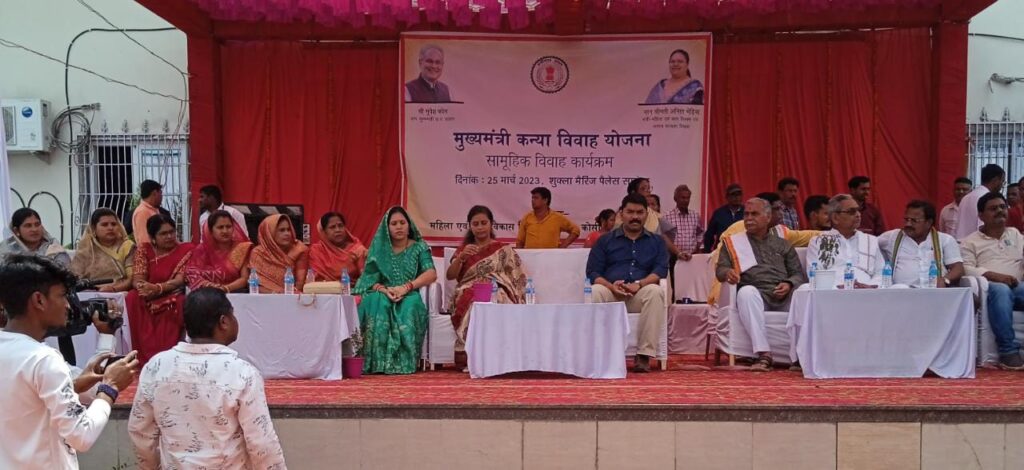 सारंगढ़-बिलाईगढ़, / जिला प्रशासन के सहयोग से मुख्यमंत्री कन्या विवाह योजना अंतर्गत आज सारंगढ़ में सामूहिक विवाह का आयोजन किया गया। इस कार्यक्रम में मुख्य अतिथि विधायक सांरगढ़ श्रीमती उत्तरी जांगड़े, कलेक्टर डॉ. फरिहा आलम सिद्दीकी और पुलिस अधीक्षक श्री आशुतोष सिंह उपस्थित थे। इस कार्यक्रम का आयोजन महिला एवं बाल विकास विभाग द्वारा किया गया था। इस समारोह में सारंगढ़ और बरमकेला से कुल 120 जोड़े विवाह बंधन में बंधे।