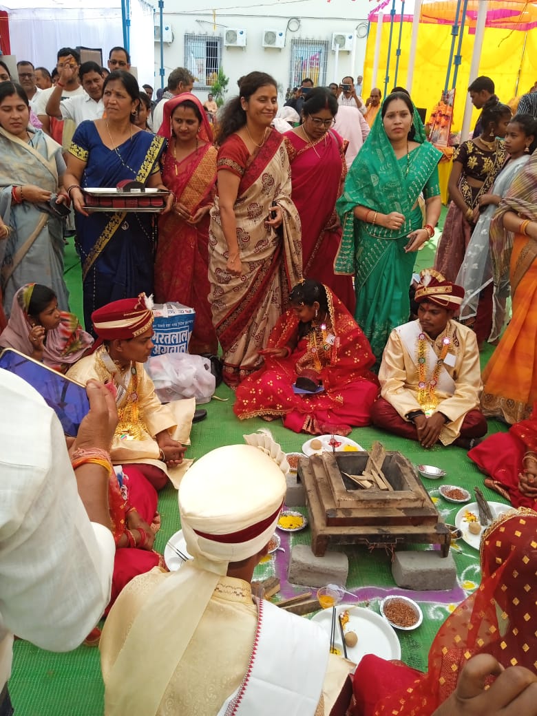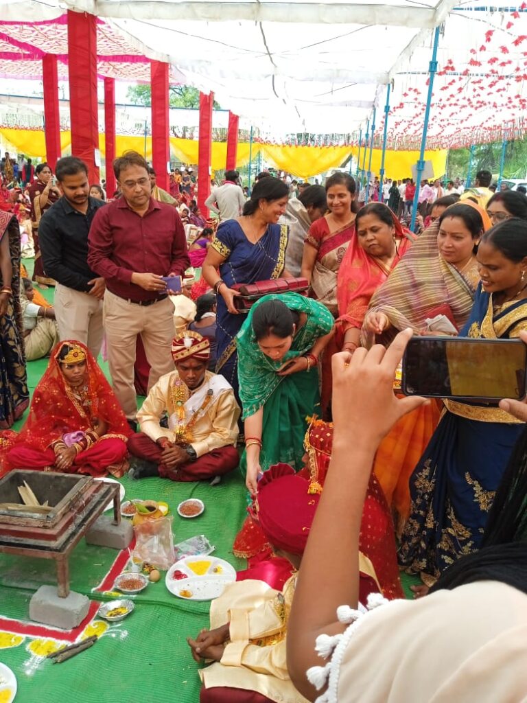 सदस्य श्री पुरूषोत्तम साहू, श्री अरूण मालाकार, श्रीमती मंजू मालाकार, श्रीमती विलास सारथी, श्रीमती तारा अरूण शर्मा, श्रीमती तुलसी वसंत, श्रीमती सोनी बंजारे, श्रीमती सीता पटेल, श्री संजय दुबे, श्री विष्णु चन्द्रा, श्री गोल्डी नायक, श्री पुष्पराज बरिहा सहित वर-वधुओं के परिजनों बड़ी संख्या में उपस्थित थे। नवरात्रि के अवसर पर यह एक ऐसा नजारा था जहां सभी महिला अतिथिगण नवदुर्गा स्वरूप वर-वधुओं को आशीर्वाद दे रही थी।