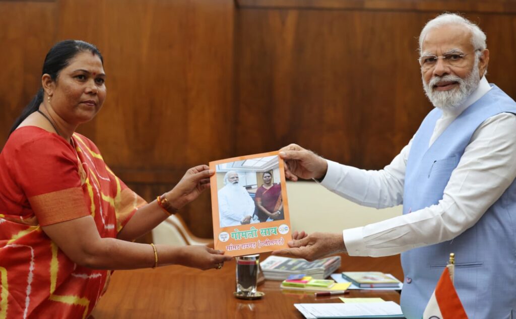 सांसद श्रीमती साय ने प्रधानमंत्री जी को अपनी क्षेत्र भ्रमण, सांस्कृतिक, राजनैतिक, धार्मिक कार्यक्रमों, जनसंपर्क दौरो एवं जनता से मुलाकात की सचित्र जानकारी पुस्तक के रूप में प्रदान करते हुए क्षेत्र की समस्याओं एवं आवश्यकताओं से अवगत कराया।