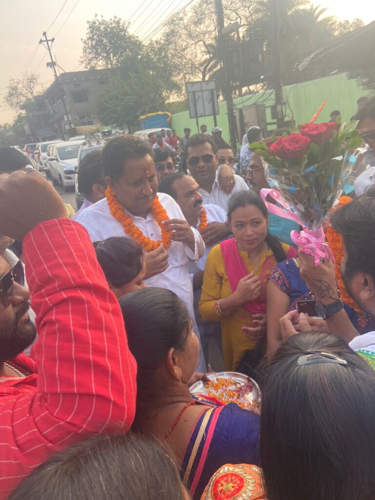 महिला कांग्रेस के कार्यकर्ताओं ने आरती कर तिलक लगाकर स्वागत किया है