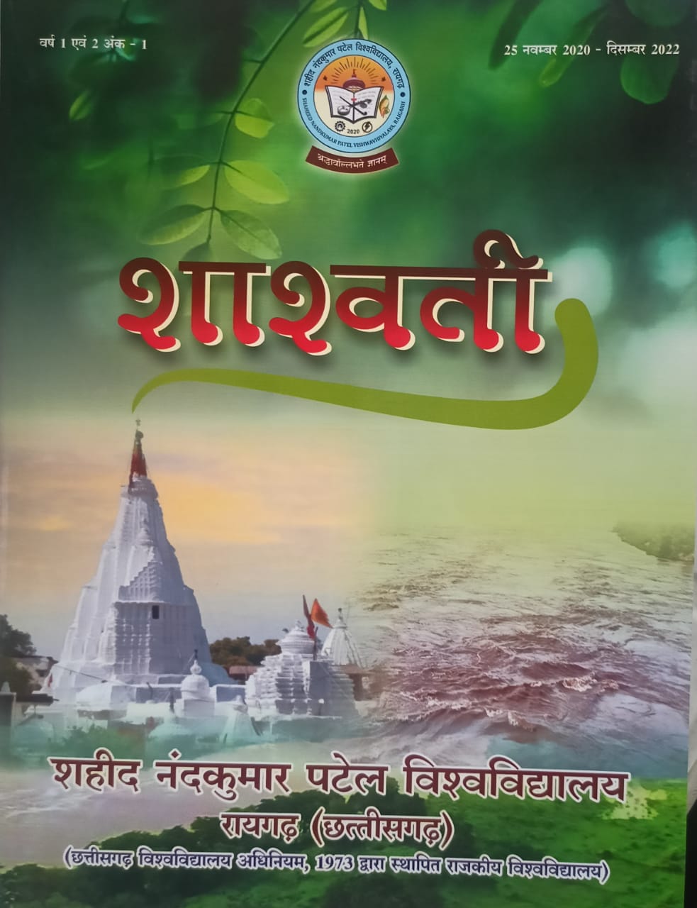 त्रैमासिक पत्रिका अपने प्रथम पड़ाव में ऐतिहासिक दस्तावेज के रूप में प्रकाशित हुआ है जिसके आगामी अंक का प्रकाशन अनवरत रूप से जारी रहेगा । विदित हो कि शहीद नंदकुमार पटेल विश्वविद्यालय अपने प्रारंभिक दौर में ही समस्त गतिविधियों को कुशलता पूर्वक संचालित करते हुए प्रकाशन की दिशा में भी अग्रसर है और प्रथम प्रकाशन में जहां नंदकुमार पटेल स्मृति ग्रंथ का विमोचन प्रथम कुल उत्सव के अवसर पर किया गया वहीं त्रैमासिक पत्रिका शाश्वती का विमोचन विश्वविद्यालय की द्वितीय प्रकाशित पत्रिका में शामिल है । विश्वविद्यालय द्वारा नियमित रूप से अपने वार्षिक प्रतिवेदन का भी प्रकाशन किया जा रहा है ।