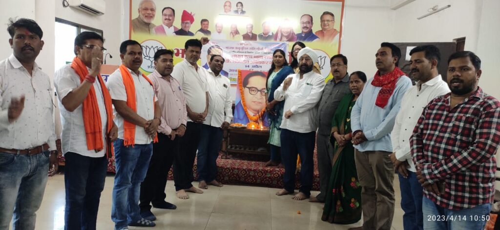 अम्बेडकर की जयंती पर जिला भाजपा कार्यालय में सर्वप्रथम उनके तैल चित्र पर पुष्पांजलि अर्पित किए गई फिर अंबेडकर चौक चौक।उनकी प्रतिमा को माल्यार्पण किया गया,इस अवसर पर भाजपा जिलाध्यक्ष उमेश अग्रवाल,भाजपा प्रदेश कार्यसमिति सदस्य विवेक रंजन सिन्हा,भाजपा अनुसूचित जनजाति मोर्चा राष्ट्रीय कार्यसमिति सदस्य श्रीकांत सोमावार ,भाजपा जिला उपाध्यक्ष बबल पाण्डेय,जिला मंत्री रत्थू गुप्ता, सक्ती विधानसभा प्रभारी विकास केडिया,नगर मंडल अध्यक्ष डिग्री लाल साहू सहित भारतीय जनता पार्टी के पदाधिकारी व कार्यकर्ता उपस्थित रहे !