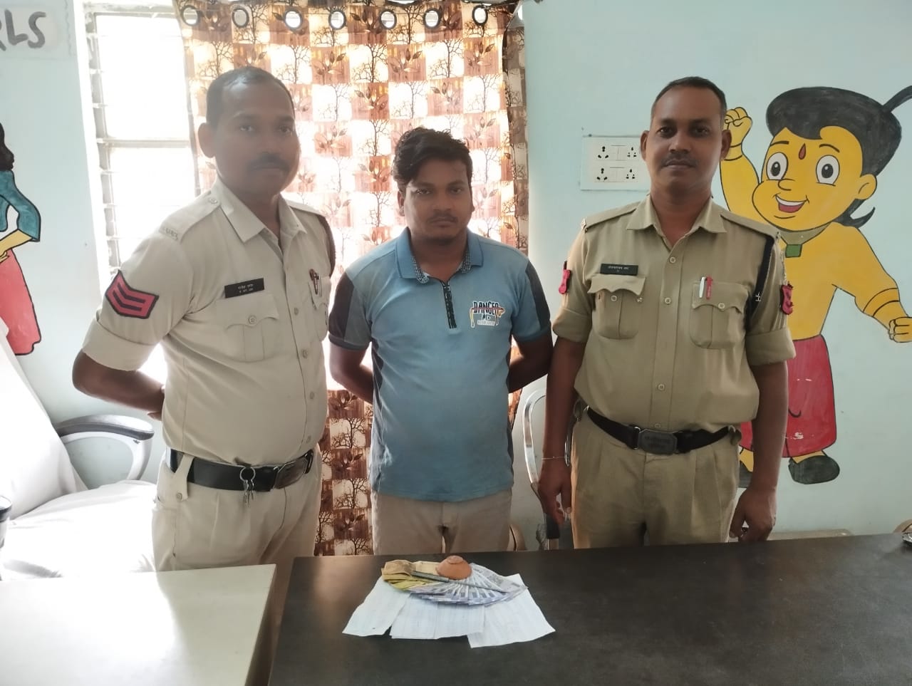 रायगढ़। कल दिनांक 29.04.2023 को नव पदस्थ थाना प्रभारी घरघोड़ा निरीक्षक शरद चंद्रा के नेतृत्व में घरघोड़ा पुलिस द्वारा मुखबिर सूचना पर घरघोडा बाईपास बंगाली ढाबा के पास एक युवक को कल्याण नामक सट्टा पट्टी का विभिन्न अंको में सट्टा पट्टी लिखते पकड़ा गया है । थाना प्रभारी को मुखबिर से सूचना मिली थी कि युवक ढाबा के पास लड़के से सट्टा नोट कर रहा है । सट्टा लिखने वाले युवक ने अपना नाम *गुलशन दास महंत पिता मानिक दास महंत उम्र 26 वर्ष साकिन घरघोडी, थाना घरघोडा जिला रायगढ़* बताया जिसके पास से नगदी रकम 1210 रूपये, एक नग डाटपेन और 3 पन्ने में लिखा सट्टा 7870 रूपये का सट्टा विवरण जप्त किया गया है । आरोपी पर गुलशन दास महंत पर नवीन छत्तीसगढ़ जुआ (प्रतिषेध) अधिनियम 2022 की धारा 6 के तहत थाना घरघोड़ा में कार्यवाही करते हुए गिरफ्तार कर रिमांड पर भेजा गया है । कार्यवाही में थाना प्रभारी घरघोड़ा निरीक्षक शरद चंद्रा हमराह प्रधान आरक्षक राजेश उरांव आरक्षक उद्यो पटेल, भानु चन्द्रा का विशेष योगदान रहा है ।