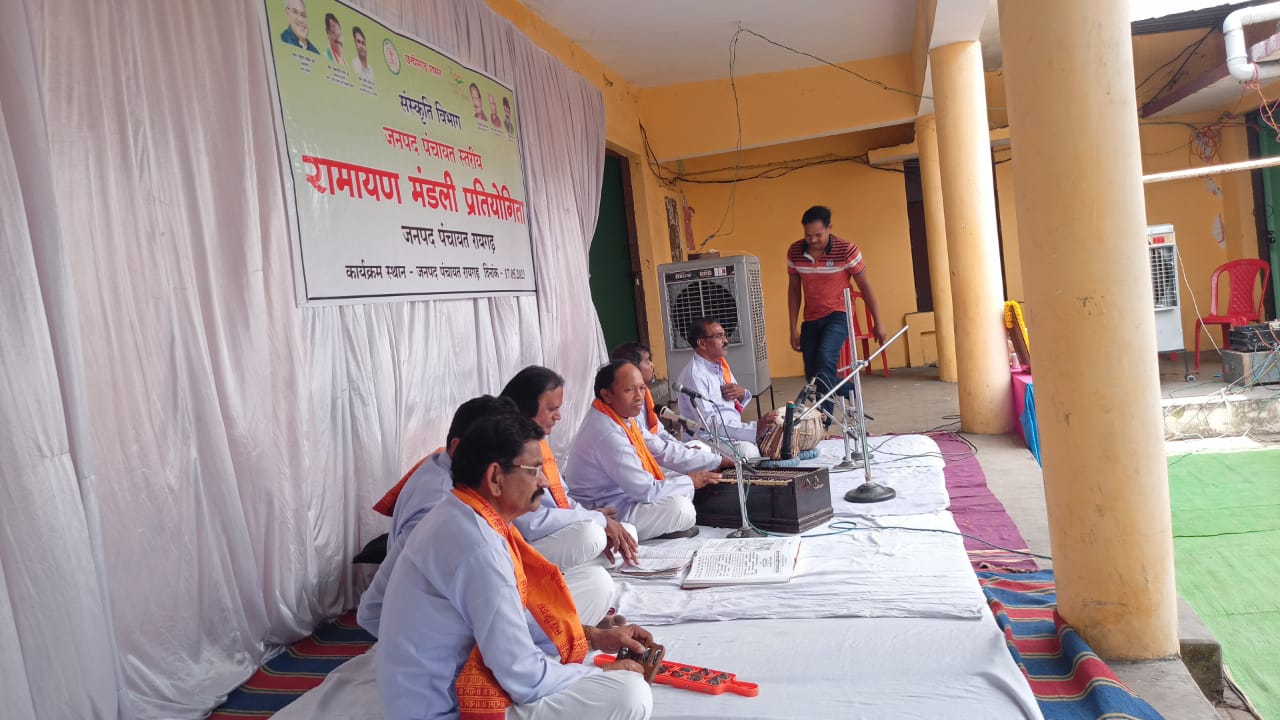 छत्तीसगढ़ शासन संस्कृति विभाग द्वारा रामायण मंडली प्रतियोगिता का आयोजन किया जा रहा है इसी कड़ी में जनपद पंचायत स्तरीय रामायण मंडली प्रतियोगिता का आयोजन 17 मई को रायगढ़ जनपद पंचायत परिसर में संपन्न हुआ । कार्यक्रम की शुरुआत छत्तीसगढ़ महतारी एवं रामचरितमानस की पूजा अर्चना के साथ किया गया जनपद पंचायत रायगढ़ के अध्यक्ष श्रीमती भूमिसुता चौहान एवं जनपद सदस्य सुश्री रजनी सिदार, मुख्य कार्यपालन अधिकारी राजेश साहू (एपीओ जिला पंचा .)कार्यक्रम के नोडल अधिकारी शैलेन्द्र कश्यप, सहायक नोडल अधिकारी श्रीकांत पाण्डेय, पी.ओ.रोशनी दुबे बनसिया के पूर्व सरपंच मनोहर पटेल एवं सहभागी मानस मंडलियों की उपस्थिति में रामचरितमानस गायन प्रतियोगिता का आयोजन किया गया । कार्यक्रम का संचालन करते हुए श्रीकांत पाण्डेय ने अतिथियों का स्वागत पश्चात निर्णायक मंडल का परिचय कराते हुए प्रतियोगिता के नियम और शर्तों की जानकारी हेतु निर्णायकों की ओर से भोजराम पटेल द्वारा रामायण मंडली प्रतियोगिता के नियम व शर्तों के साथ छत्तीसगढ़ शासन संस्कृति विभाग द्वारा दिए गए दिशा निर्देशों के बारे में मंडलियों को अवगत कराया गया । तत्पश्चात मानस मंडलियों को क्रमशः आमंत्रित किया गया। मानस मंडली द्वारा अपनी प्रस्तुति में व्याख्यान गीत संगीत गायन भाषा शैली एवं उनके गणवेश पर अंक निर्धारित थे और इसी आधार पर उनका चयन जिला स्तर के लिए किया गया । निर्णायकों द्वारा दिए गए अंको के आधार पर जिला के लिए चयनित मानस मंडली का नाम घोषित किया गया जिसमें ग्राम पंचायत एवं ग्राम बनसिया के रामायण मानस मंडली को प्रथम स्थान कांशीचुंवा मानस मंडली को द्वितीय एवं परसदा ग्राम पंचायत के मुरालीपाली से आये मानस मण्डली को तृतीय स्थान प्राप्त हुआ । जनपद पंचायत की ओर से प्रथम द्वितीय और तृतीय आने वाले मानस मंडली उनको साल श्रीफल तथा प्रशस्ति पत्र देकर सम्मानित किया गया वही निर्णायकों को भी जनपद पंचायत द्वारा साल श्रीफल तथा प्रशस्ति पत्र देकर विशिष्ट समय दान हेतु ससम्मान धन्यवाद दिया गया । पूर्व के आयोजनों की तुलना में हालांकि गर्मी की वजह से इस बार कम रामायण मानस मंडलियों की सहभागिता रही लेकिन उपस्थित मानस मंडली में भरपुर उत्साह देखी गई । 18 को होगा जिला स्तरीय प्रतियोगिता .. . जनपद पंचायत रायगढ़ के सहायक नोडल अधिकारी श्रीकांत पांडे ने बताया कि 18 मई गुरुवार को पंजरीप्लांट स्थित नगर पालिक निगम ऑडिटोरियम में जिला स्तरीय रामायण मंडली प्रतियोगिता का आयोजन होगा जिसमें प्रत्येक ब्लाक के जनपद स्तर के चुने हुए रामायण मंडली भाग लेकर संभाग और राज्य स्तर के प्रतिभागी के रूप में शामिल होंगे माह के अंत में राज्य स्तरीय रामायण मंडली प्रतियोगिता का