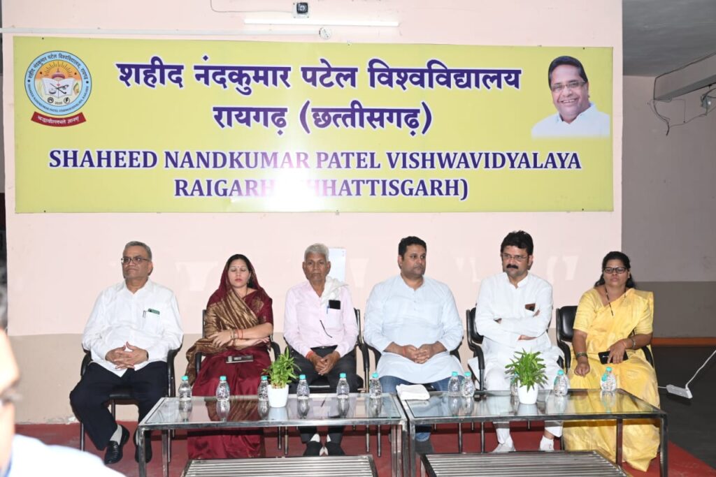 जांगड़े, जिला पंचायत सदस्य निराकार पटेल, महापौर श्रीमती जानकी काटजू, विश्वविद्यालय कार्य परिषद के सदस्य जगदीश मेहर,दिलीप पाण्डेय, जिला कांग्रेस अध्यक्ष अरुण मालाकार एवं गणपत जांगड़े सहित अन्य पदाधिकारी व गणमान्य जन महाविद्यालय के प्राचार्य प्रध्यापक गणों की उपस्थिति रही । विश्वविद्यालय के कुलपति प्रो. (डॉ.) ललित प्रकाश पटेल की अध्यक्षता में इस श्रद्धांजलि सह पुण्य स्मरण आयोजन में वि.वि. के कुल सचिव (प्र) प्रकाश कुमार त्रिपाठी सहा. कुलसचिव सौरभ शर्मा, राष्ट्रीय सेवा योजना के विवि कार्यक्रम समन्वयक डॉ. सुशील कुमार एक्का प्रो. रोहिणी आर्या (स्थापना एवं प्रशासन) प्रभारी अधिकारी सुनील अग्रवाल (परीक्षा नियंत्रक) डॉ. रविन्द कौर चौबे (अधिष्ठाता) तापस चटर्जी (क्रीड़ा) डॉ. नीरजा तिवारी सिंह ( एकेडमी ) डॉ. रश्मि यादव, सारंगढ़ प्राचार्य डी.आर.लहरे, प्राचार्य पॉलिटेकनिक राजेश मिश्रा जिला संगठक रा.से.यो. भोजराम पटेल प्रो.डॉ. मनोहर पटेल, प्रो पी.के. अग्रवाल रणजीत बारीक, प्रो प्रदीप शर्मा पी.एल पटेल (प्राचार्य बटमूल कालेज) डॉ. गजेन्द्र चक्रधारी (जानकी कॉलेज आफ एजुकेशन ) डॉ. गोमती सिंह (उत्तम मेमोरियल) आदि की उपस्थिति रही ।इस अवसर पर इस विद्यालय के कुल गीतकार संगीतमय प्रस्तुतीकरण भी हुआ तत्पश्चात विश्वविद्यलय के कुलपति डॉ. पटैरिया ने स्वागत उद्बोधन के साथ अपने कुल पुरुष शहीद पटेल को श्रद्धासुमन अर्पित किया। विशिष्ट अतिथियों में विधायक प्रकाश नायक उत्तरी जांगड़े जिला पंचायत अध्यक्ष निराकार पटेल एवं महापौर श्रीमती जानकी काटजू ने भी अपने उद्बोधन में शहीद नंदकुमार पटेल के अवदानों को याद करते हुए पुण्य स्मरण के साथ श्रद्धांजलि अर्पित की। अंत में आभार प्रदर्शन कुलसचिव प्रकाश कुमार त्रिपाठी द्वारा किया गया कार्यक्रम का संचालन प्रो.रोहिणी आर्या ने किया Iश्रद्धांजलि सह पुण्यस्मरण कार्यक्रम में शहीद नंद कुमार पटेल विश्वविद्यालय के समस्त अधिकारी व कर्मचारियों की विशेष सहभागिता रही । .