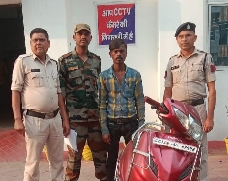 रायगढ़ । कल शाम कोतवाली पुलिस द्वारा रेलवे स्टेशन के पास एक युवक को चोरी की स्कुटी को अपनी बताकर सेकंड हैंड सस्ते दाम में बेचने के लिए कुछ लोगों से सौदा तय करते समय पकड़ा गया है । दरअसल थाना प्रभारी कोतवाली निरीक्षक शनिप रात्रे को मुखबिर से युवक के संबंध में सूचना मिला था । थाना प्रभारी द्वारा थाने के स्टाफ को स्टेशन चौक जाकर तस्दीक करने का निर्देश दिए । कोतवाली स्टाफ द्वारा रेलवे स्टेशन के बाहर चौंक पर स्कूटी बेचने के लिये लोगों से चर्चा करने वाले संदिग्ध युवक रोशन शर्मा उर्फ मुसद्दी निवासी गुजराती पारा जयराम कॉलोनी को हिरासत में लेकर रेलवे स्टेशन चौक पर स्थित पुलिस सहायता केंद्र पर ले गई जिससे स्कूटी के संबंध में कड़ी पूछताछ करने पर रोशन शर्मा बताया कि 2 दिन पहले रविवार की रात (28 मई) को अपने मोहल्ले गुजराती पारा में एक घर के बाहर खड़ी लाल रंग की स्कूटी को चोरी कर सोनुमुड़ा काली मंदिर के पास छुपा कर रखा है जिसे बेचने के लिए अपने परिचित लोगों से सौदा कर रहा था । थाना कोतवाली में स्कूटी मालिक राधेश्याम गुप्ता निवासी द्वारा गुजराती पारा जयराम कॉलोनी उनके स्कूटी होंडा एक्टिवा क्रमांक सीजी 13 वाई 7928 के चोरी की रिपोर्ट 29 मई को थाना कोतवाली में दर्ज कराया गया था । कोतवाली पुलिस द्वारा *आरोपी रोशन शर्मा उर्फ मुसद्दी पिता राजेंद्र शर्मा उम्र 32 साल निवासी गुजराती पारा जयराम कॉलोनी थाना कोतवाली रायगढ़* के मेमोरेंडम पर चोरी गई लाल रंग की *स्कूटी CG 13 Y- 7928 कीमत ₹40,000* को वाहन चोरी के अपराध में बरामद कर आरोपी को चोरी के अपराध में न्यायिक रिमांड पर भेजा गया है । माल, मुलजिम की पतासाजी में थाना प्रभारी कोतवाली निरीक्षक शनिप रात्रे, प्रधान आरक्षक विक्रम चौरसिया, प्रधान आरक्षक ताराचंद पटेल, आरक्षक जगमोहन लाल ओग्रे, संदीप मिश्रा और नारायण राठिया की प्रमुख भूमिका रही है ।