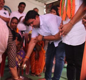 तय कार्यक्रम अनुसार तीन दिवसीय जगन्नाथ पूरी यात्रा से वापस लौटे वृद्ध माताओं को श्रीफल भेंटकर सांसद गोमती साय और युवा नेता सनत कुमार नायक ने उनका पैर धोकर सम्मानित किया,
