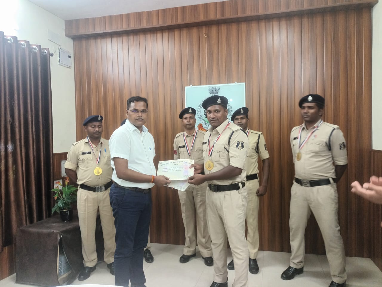 वहीं जिला पुलिस रायगढ़ में पदस्थ एथलेटिक्स का नेशनल खिलाड़ी आरक्षक अचिन्त गबेल (थाना अजाक) प्रतियोगिता के 1500 मीटर दौड़ में द्वितीय स्थान प्राप्त कर रजत पदक हासिल किया । जिले का होनहार खिलाड़ी अचिन्त गबेल राष्ट्रीय खेलों में 6 स्वर्ण, 3 रजत और 3 बार कांस्य पदक प्राप्त कर चुका है । अचिन्त गबेल का भी ऑल इंडिया पुलिस मीट गेम्स में 10 किलोमीटर क्रॉस कंट्री दौड़ सिलेक्शन हुआ है । सम्मान कार्यक्रम दौरान कार्यालय के मुख्य लिपिक श्री जे.पी. चेलकर और समस्त स्टाफ ने प्रतियोगिता में बेहतरीन प्रदर्शन के लिये बधाई और ऑल इंडिया गेम्स के लिए शुभकामनाएं दिया गया है ।