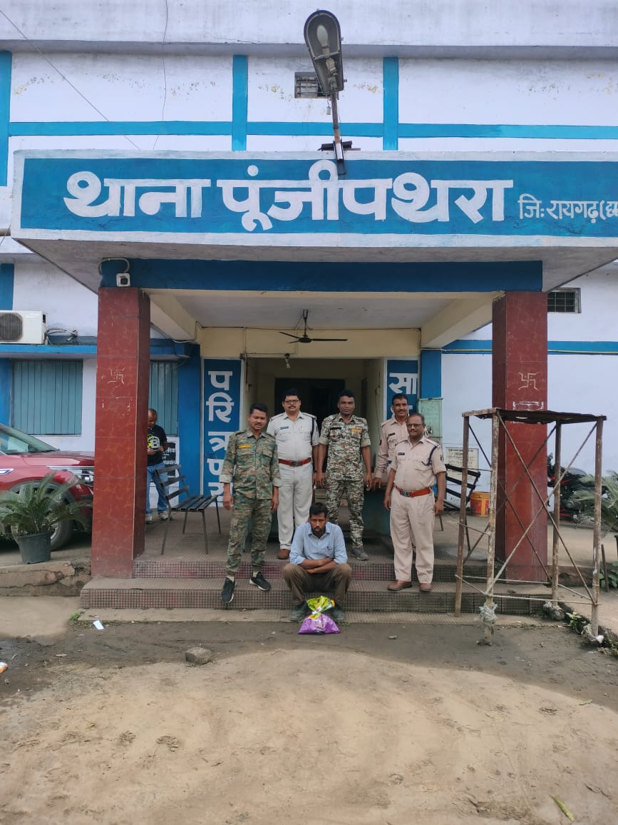 रायगढ़ । जिले में पुलिस की मादक पदार्थों के विरुद्ध कार्यवाही निरंतर जारी है । वरिष्ठ पुलिस अधीक्षक श्री सदानंद कुमार के निर्देशन पर पूंजीपथरा पुलिस लगातार अवैध शराब पर कार्यवाही कर रही है । थाना प्रभारी हर्षवर्धन सिंह बैस द्वारा क्षेत्र में मुखबिर तंत्र सुदृढ कर मादक पदार्थों की खरीदी बिक्री एवं परिवहन करने वालों पर सूचना देने मुखबीर सक्रिय किया गया है । इसी क्रम में कल रात्रि टीआई पूंजीपथरा को मुखबिर से सूचना मिला कि एक व्यक्ति घरघोड़ा मार्ग से होते हुए ग्राम छर्राटांगर, डोकरबुडा की ओर काले रंग की सोल्ड होंडा साइन बाइक पर नशेली सिरप अवैध रूप से बेचने के लिये लेकर निकला है । थाना प्रभारी द्वारा थाने से सहायक उपनिरीक्षक जयराम सिदार के हमराह स्टाफ को कार्यवाही के लिए रवाना किया गया । पूंजीपथरा पुलिस ने छर्राटांगर बाजारपारा के पास संदेही को नशेली सिरप के साथ घेराबंदी कर धरदबोचा गया । चालक अपना *डमरूधर डनसेना पिता स्व. श्री राम प्रसाद डनसेना उम्र 43 वर्ष निवासी डोकरबुडा* बताया , जिसे सिरप रखने के संबंध में पुलिस अधिकारी ने धारा 91 सीआरपीसी का नोटिस दिया जिसका डमरूधर कोई जवाब नहीं दे पाया जिसके कब्जे से 100ml वाली *12 प्रतिबंधित कोडीन फास्फेट सिरप ONEREX कीमती ₹1,800* का जप्त कर कब्जा पुलिस लिया गया । आरोपी से नशीली सिरप और सोल्ड मोटरसाइकिल की विधिवत जपती कर आरोपी के विरुद्ध थाना पूंजीपथरा में 22(C) एनडीपीएस एक्ट के तहत कार्यवाही कर आरोपी को न्यायिक रिमांड पर भेजा गया है । टीआई हर्षवर्धन सिंह बैस के साथ रेड कार्यवाही में सहायक उप निरीक्षक जयराम सिदार, आरक्षक कमलेश निराला और चन्द्रशेखर चन्द्राकर शामिल थे ।