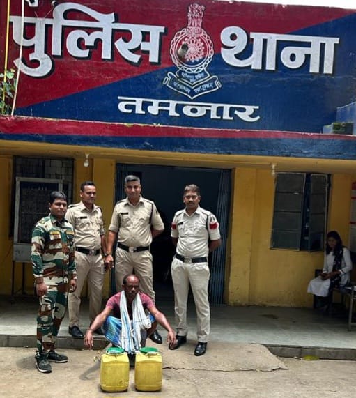 वरिष्ठ पुलिस अधीक्षक श्री सदानंद कुमार के निर्देशन पर तमनार पुलिस क्षेत्र में मुखबिर लगाकर अवैध शराब एवं जुआ-सट्टा पर लगातार कार्यवाही की जा रही है । इसी क्रम में मंगलवार के शाम थाना प्रभारी तमनार निरीक्षक आर्शीवाद राहटगांवकर के नेतृत्व में तमनार पुलिस ने ग्राम कोलम में शराब रेड कार्रवाई किया गया । पुलिस को गांव के पूरन तिर्की द्वारा उसके बाडी में अवैध शराब रखकर बिक्री करने की सूचना मिली थी । पुलिस ने रेड कार्यवाही में 15 लीटर क्षमता वाले 02 प्लास्टिक डिब्बे में *30 लीटर महुआ शरब की जप्ती* किया गया है । *आरोपी पूरन तिर्की पिता स्व. गुरूवारू तिर्की उम्र 45 वर्ष साकिन कोलम तमनार* के विरूद्ध थाना तमनार में धारा 34 (2) 59 (क) आबकारी एक्ट के तहत कार्यवाही कर रिमांड पर भेजा गया है ।