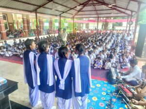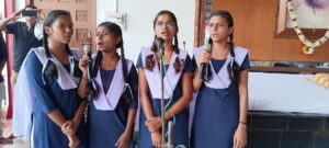 छात्राओं द्वारा बहुत ही मोहक अंदाज में स्थापना दिवस के उपलक्ष्य में मनमोहन गीत की प्रस्तुति दी गई ।कक्षा आठवीं की छात्राएं दीक्षा अमृता यामिनी द्वारा मंगलाचरण हे अघोरेश्वर विश्व विधाता, कक्षा नवमी की छात्राएं साधना शारदा दीक्षा ऋतु द्वारा स्वागत गीत स्वागतम स्वागतम स्वागतम आपका, कक्षा