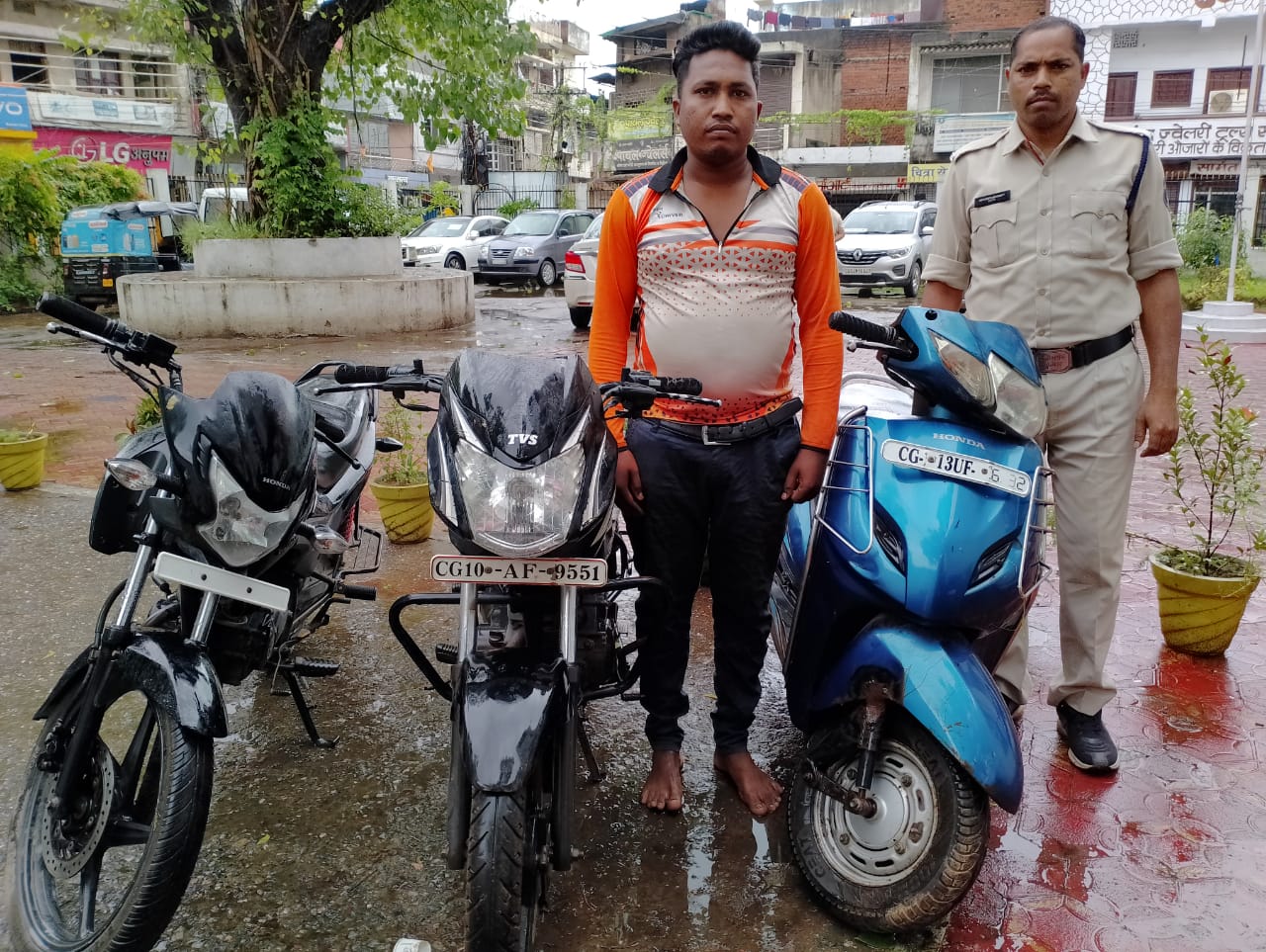 रायगढ़ । वरिष्ठ पुलिस अधीक्षक श्री सदानंद कुमार के निर्देशन व अतिरिक्त पुलिस अधीक्षक श्री संजय महादेवा के मार्गदर्शन एवं नगर पुलिस अधीक्षक श्री अभिनव उपाध्याय के पर्यवेक्षण पर बाइक चोरों पर मुखबिर लगाकर सतत निगाह रखी जा रही है । इसी क्रम में कल दोपहर सर्किट हाउस के पास चोरी की स्कूटी बेचने ग्राहक तलाश रहे युवक को कोतवाली पुलिस ने मुखबिर सूचना पर घेराबंदी कर पकड़ा । कोतवाली थाना प्रभारी निरीक्षक शनिप रात्रे को मुखबिर से सूचना मिली थी कि आरोपी के पास रखी हुई स्कूटी CG 13 UF 6232 चोरी की है । पुलिस की घेराबंदी में पकड़े गए युवक ने अपना नाम हरि शंकर भट्ट निवासी खुरूसलेंगा, तमनार का होना बताया जिसे स्कूटी के संबंध में कड़ी पूछताछ करने पर आरोपी युवक ने स्कूटी को चोरी का होना बताते हुए रायगढ़ के विभिन्न स्थानों से स्कूटी के अलावा दो मोटरसाइकिल टीवीएस स्पोर्ट्स और एक होण्डा लियो की चोरी कर अपने घर में छुपा कर रखना बताया । कोतवाली पुलिस द्वारा आरोपी के मेमोरेंडम पर उसके घर से मोटरसाइकिल टीवीएस स्पोर्ट्स क्रमांक CG 10 AF 9551 तथा एक लियो होंडा लीवो मोटरसाइकिल के साथ एक्टिवा स्कूटी CG 13 UF 6232 *कुल कीमत ₹75000* को जप्त कर आरोपी के पास चोरी की संपत्ति होने के युक्ति युक्त साक्ष्य पर *आरोपी हरि शंकर भट्ट हरि शंकर भट्ट पिता मिस्त्री भट्ट उम्र 29 वर्ष निवासी खुरूसलेंगा थाना तमनार रायगढ़* के विरुद्ध थाना कोतवाली में धारा 41(1+4)CrPC, 413 IPC के तहत कार्यवाही कर आरोपी को न्यायिक पर भेजा गया है । थाना प्रभारी कोतवाली निरीक्षक शनिप रात्रे के नेतृत्व में माल मल्जिम पतासाजी की कार्यवाही में सहायक उपनिरीक्षक इगेश्वर यादव, प्रधान आरक्षक दिलीप भानु, हेमन पात्रे, आरक्षक जगमोहन ओग्रे, उत्तम सारथी और संदीप मिश्रा की अहम भूमिका रही है ।