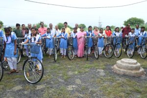 रायगढ़- कई ऐसे ग्राम है जहा स्कूल से घर की अधिक दूरी होने की वजह से छात्राए अपनी पढ़ाई जारी नही रख पाती है।इन्ही पात्र हितग्राही छात्राओ की सुविधाओ को ध्यान में रखते हुए प्रदेश शासन द्वारा सरस्वती सायकल जैसी महत्त्वपूर्ण योजना का संचालन किया जा रहा है।उक्त बाते विधायक प्रकाश नायक द्वारा स्थानीय छातामुड़ा हाई स्कूल में आयोजित सायकल वितरण कार्यक्रम के दौरान मुख्य अतिथि के रूप में कही गई।वही उन्होंने आगे अपनी बात रखते हुए बताया कि पूर्व में जहा छात्राओ की पढ़ाई पांचवी के बाद प्रभावित रहती थी वही वर्तमान में छात्राए हर क्षेत्र में अग्रणी है।विधायक द्वारा इस अवसर पर सभी छात्राओ को शुभकामनाए प्रदान करते हुए अपने लक्ष्य की प्राप्ति कर अपने गुरुजनों एवम माता पिता का नाम रोशन करने कामना की गई।