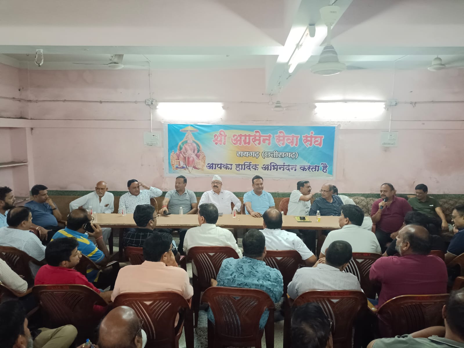 चर्चा हुई। शोभायात्रा को भव्य रूप देने भी अग्रजनों ने सहमति जताई। जयंती की रूपरेखा हेतु बैठक के दौरान सुझाव भी मांगे गए जिस पर यूवाओ सहित वरिष्ठ जनों से अपनी खुलकर राय रखी। जयंती के आयोजन के दौरान समाज के अंतिम पंक्ति में खड़े अग्रजन की सहभागिता के लिए भी विचार विमर्श किया गया। शहर के कोने कोने में मौजूद अग्र बंधुओं को जोड़ने के लिए पृथक जोन बनाए जाने का निर्णय लिया गया। ताकि सभी अग्र बंधुओं को जयंती के आयोजन से जोड़ा जा सके। समापन एवं पुरस्कार वितरण समारोह के दौरान प्रदेश स्तरीय एवम राष्ट्रीय स्तर से जुड़े वरिष्ठ अग्रबंधु को बतौर मुख्य अतिथि के रूप में आमंत्रित किए जाने पर विचार हुआ। अग्रसेन जयंती हेतु आयोजित बैठक के दौरान सागर महमिया,बाबूलाल अग्रवाल,बजरंग महमिया,बजरंग अग्रवाल (लेन्ध्रा),सुनील अग्रवाल (लेन्ध्रा),मुकेश मित्तल कलानोरिया, सुरेश गोयल,सुशील रामदास,प्रदीप गर्ग,प्रमोद अग्रवाल (मेडिकल),अनिल अग्रवाल (एयरटेल),त्रिलोक महमिया,राकेश अग्रवाल (चूड़ी),निर्मल अग्रवाल, विक्की पुष्पक,आनंद बेरीवाल,सुभाष अग्रवाल (चिराग),किशन अग्रवाल,रमेश छापरिया,मुकेश गोयल (कालिंदी कुंज),कमल सावड़िया,शक्ति अग्रवाल,अनूप रतेरिया,बजरंग अग्रवाल (जूटमिल),मनीष पालीवाल, कौशल अग्रवाल,विमल अग्रवाल, राजेश बेरीवाल,मनोज अग्रवाल (होंडा),अनिल अग्रवाल (चीकू),ओमी अग्रवाल, राजा जैन, तरुण संजीवनी,आशुतोष अग्रवाल,राहुल महमिया, दिनेश गर्ग,अजय अग्रवाल (नई पीढ़ी), विकास केड़िया, कमल अग्रवाल (परले),गणेश अग्रवाल,संजय तायल,राकेश बापोडिया,मोनिक सिंघल, मनीष दवाई,आनंद गर्ग,शिव तायल,आनंद नहाडिया,सरस गोयल, संजय अग्रवाल (कोसा),अशोक लॉज, नीरज कुडुमकेला, शिबू जिंदल,संजय पत्थलगांव सहित बड़ी संख्या में अग्रबंधू मौजूद रहे