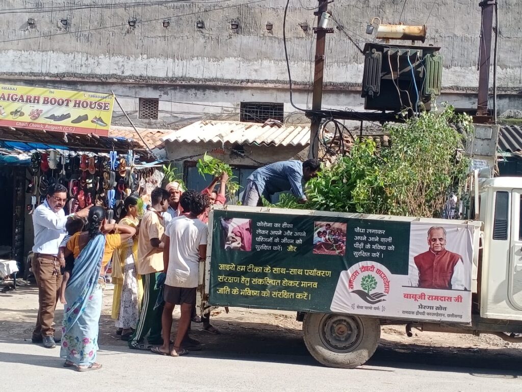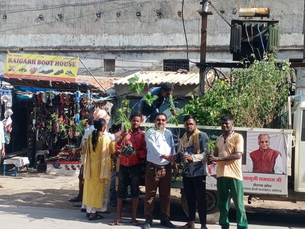 सत्तीगुड़ी चौक सहित नगर के कई स्थानों पर रथ द्वारा किया गया लोगों में पौध वितरण