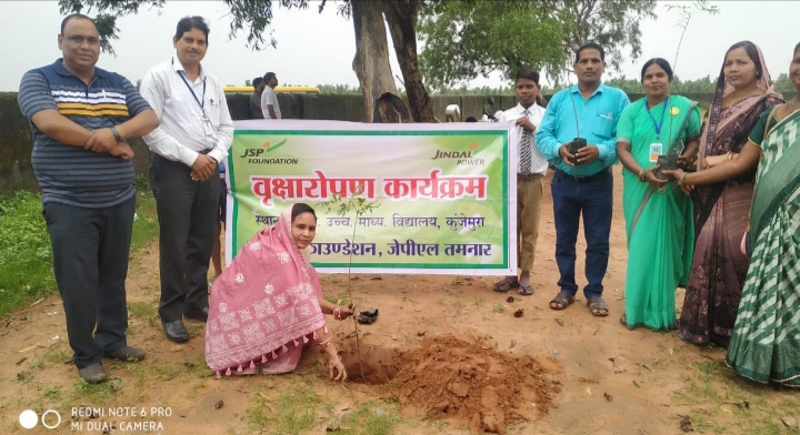 तमनार- जेएसपी फाउण्डेशन, जेपीएल तमनार क्षेत्र के सर्वांगीण विकास के प्रति सदैव समर्पित रही है। संस्थान एक पर्याहितैषी संस्थान होने के नाते सम्पूर्ण क्षेत्र में पर्यावरणीय वातावरण निर्माण में बढ़ चढ़कर भाग लेती है तथा शासन के प्रत्येक योजनाओं में अपनी भूमिका का निर्वहन करती रही है। इसी क्रम में तमनारांचल केे विभिन्न ग्राम में तालाब गहरीकरण के कार्य सम्पन्न कर उसके सौन्दर्यीकरण के लिए के उसके मेड़ों में, स्कूलों में, सडक किनारे सघन वृक्षारोपण किये जा रहे हैं। इसी क्रम में आज स्वामी आत्मानंद उच्चत्तर माध्यमिक विद्यालय कुंजेमुरा में सघन वृक्षारोपण किया गया।