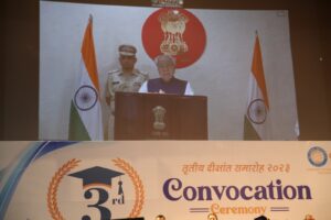 अतिथि छत्तीसगढ़ के माननीय राज्यपाल श्री बिस्वभूषण हरिचंदन जी ने राजभवन, रायपुर से वर्चुअल माध्यम से सम्बोधित करते हुए विश्वविद्यालय एवं विद्यार्थियों को दीक्षांत समारोह की बधाई देते हुए प्रसन्नता व्यक्त किया की ओपी जिंदल विश्वविद्यालय में नवोन्मेषी शैक्षिक कार्यक्रम तथा अनुसंधान आदि में स्तरीय कार्य किये जा रहे हैं जो छात्रों के साथ-साथ समाज के लिए अत्यंत उपयोगी हैं। हमें ऐसी शिक्षा प्रणाली की आवश्यकता है जो सकारात्मक तरीकों पर आधारित शिक्षण और सीखना हो। छत्तीसगढ़ प्राइवेट यूनिवर्सिटी रेगुलेटरी कमीशन के चेयरमैन डॉ उमेश कुमार मिश्र ने अपने सम्बोधन में मूल्य आधारित