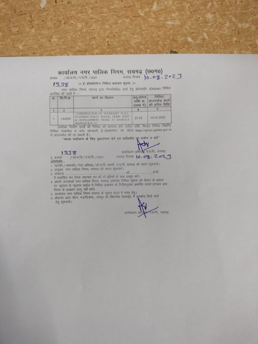 रायगढ़ / बहुप्रतीक्षित रामलीला मैदान के उन्नयन हेतु निविदा जारी किया गया राशि 25 लाख 92 हजार रु से मैदान का जीर्णोद्धार किया जाएगा, वार्ड पार्षद अनुपमा शाखा यादव ने विधायक महापौर एवं जिला कलेक्टर को साधुवाद दिया।