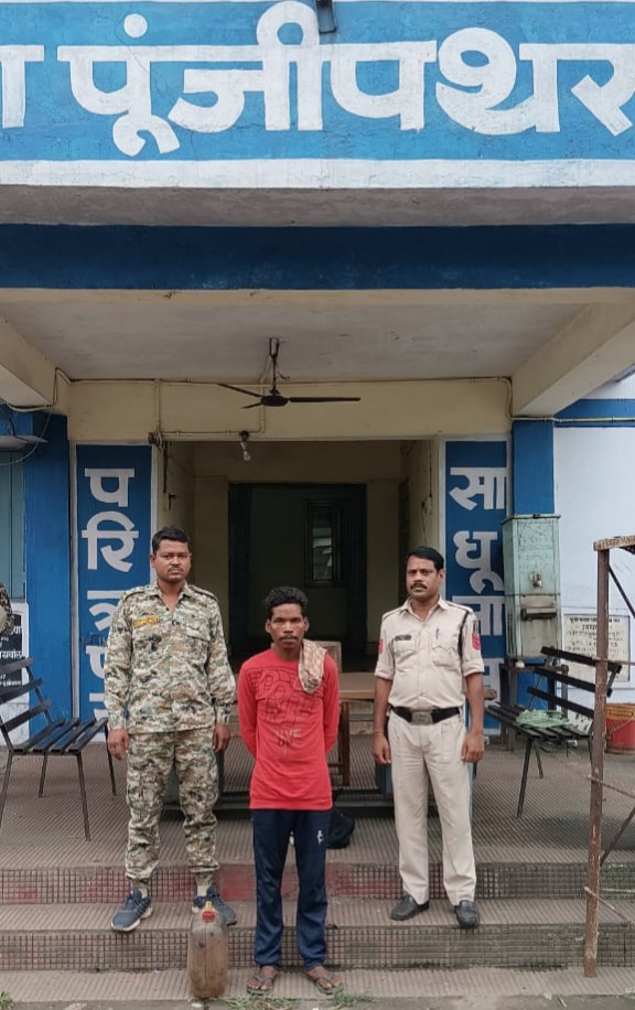 रायगढ़ । थाना प्रभारी पूंजीपथरा निरीक्षक हर्षवर्धन सिंह बैस के नेतृत्व में आज दिनांक 12/08/2023 को पूंजीपथरा पुलिस की पेट्रोलिंग पार्टी द्वारा ग्राम तराईमाल के महेश भगत द्वारा घर आंगन में बने झोपड़ी में अवैध रूप से महुआ शराब बिक्री करने की मुखबिर सूचना पर शराब रेड कार्यवाही किया गया । मौके पर मौजूद मिले महेश भगत से अवैध शराब बिक्री के संबंध में पूछताछ करने पर उसने झोपड़ी में छिपा कर रखा 10 लीटर क्षमता वाले प्लास्टिक जरकिन में भरा हुआ *10 लीटर महुआ शराब* लाकर पेश किया जिसे विधिवत जप्ती कर *आरोपी महेश भगत पिता घसिया भगत उम्र 28 साल तराईमाल थाना पूंजीपथरा* को मय शराब थाना पूंजीपथरा लाया गया जिस पर 34(2),59(क) आबकारी एक्ट के तहत कार्यवाही कर न्यायिक रिमांड पर भेजा गया है ।